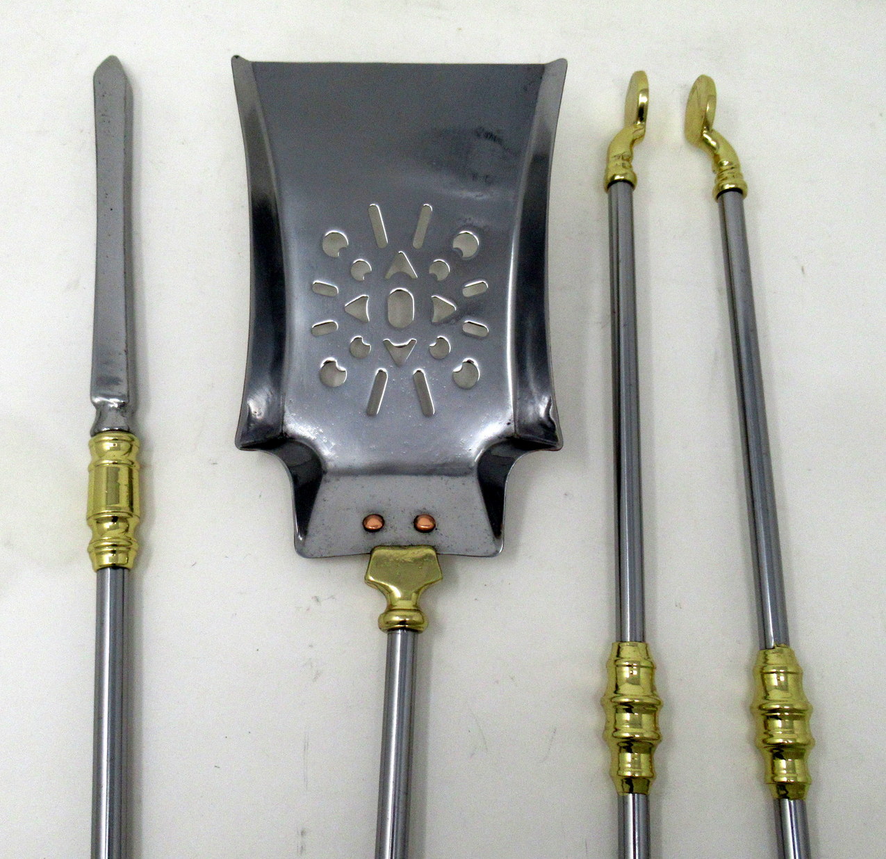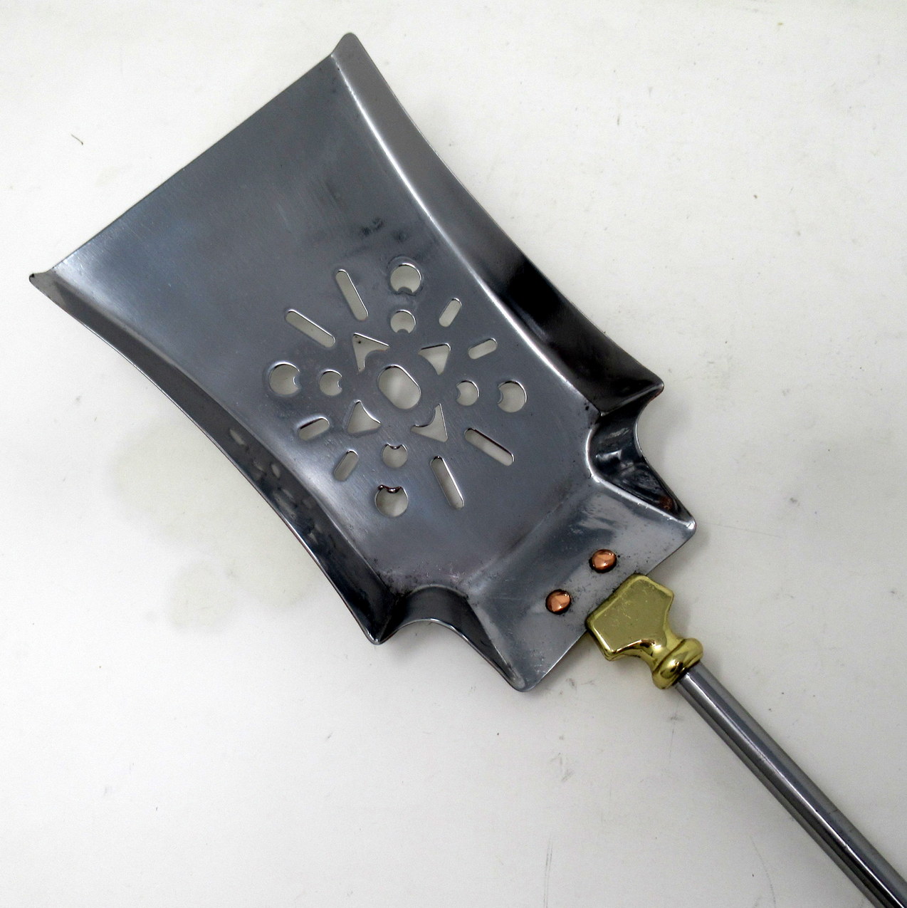 Condition: Superb condition for such early pieces with no restoration anywhere, steel and brass professionally polished, original copper rivets on shovel.