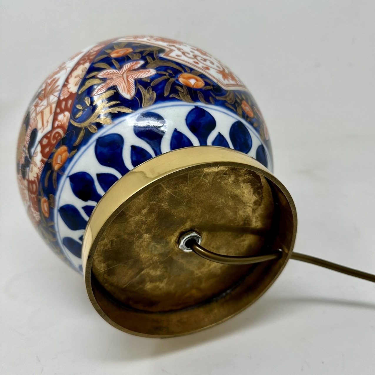 664. Antique Vintage Japanese Chinese Imari Porcelain Ormolu Table Lamp Blue Red