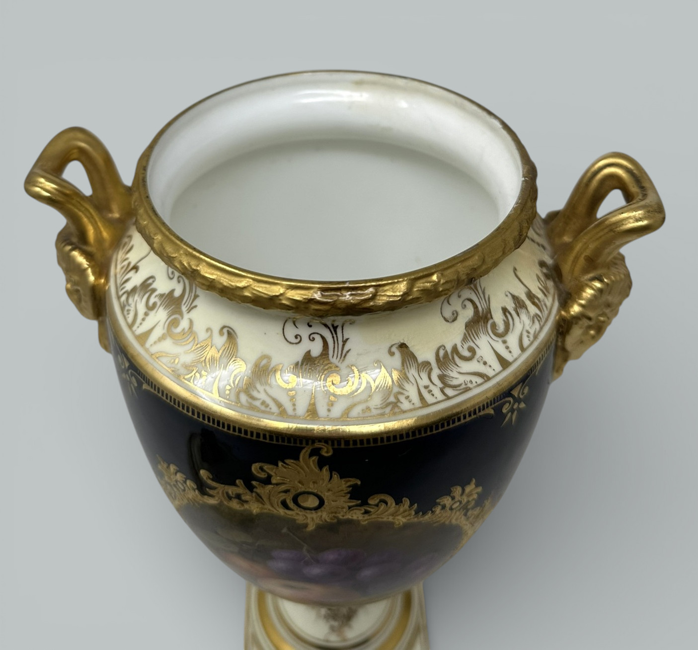 682. Antique Pair Coalport Painted Vases Urn Frederick Chivers Still Life Fruits 1910 (Copy)