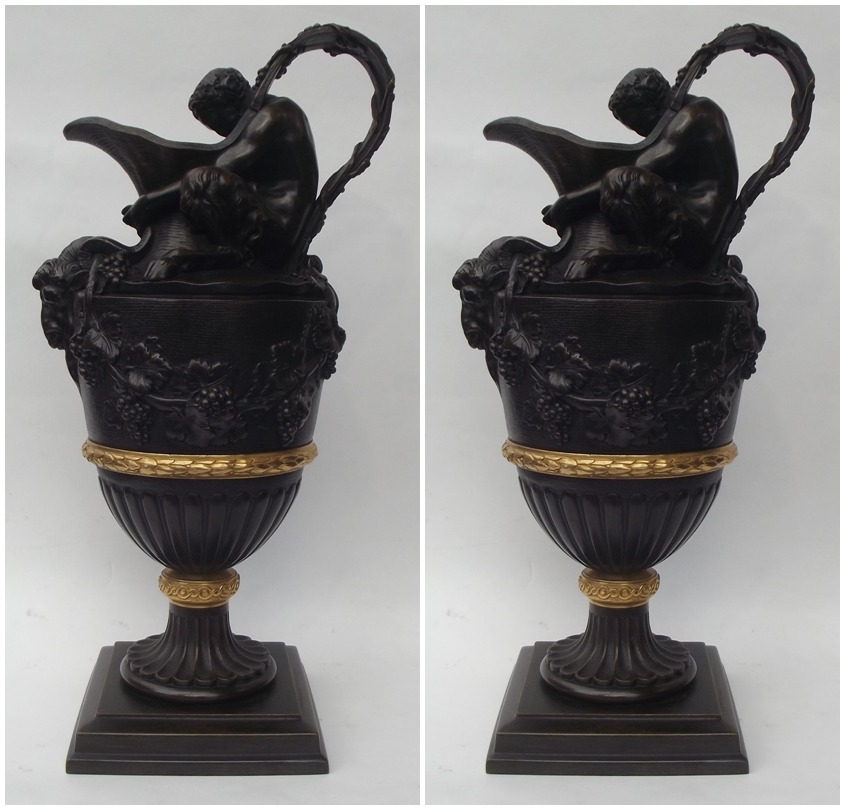 687. Pair Ormolu Bronze Ewers after SIGISBERT-FRANCOIS MICHEL