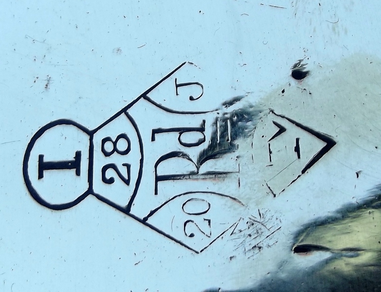 Mark of well known english metal workers and oil lamp makers Benham & Fround (1855-1924) Chandos Street, London. Impressed mark also of Victorian date lozenge.