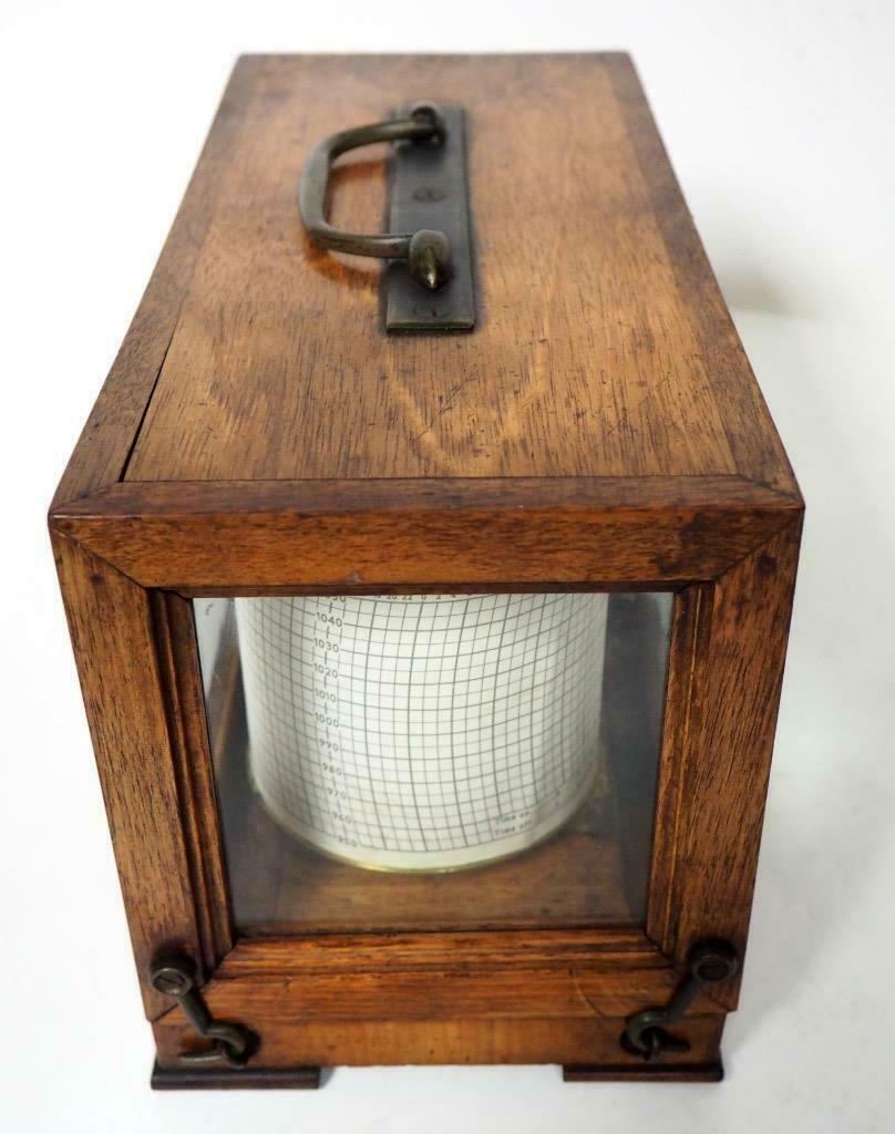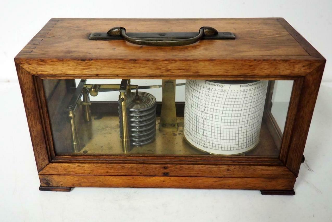 Superb Well Grained Polished Oak Hinged Lid Glazed Cased English Barograph Scientific Weather Machine of exceptional quality, of traditional rectangular form. Last quarter of the Nineteenth Century, could be a little later.