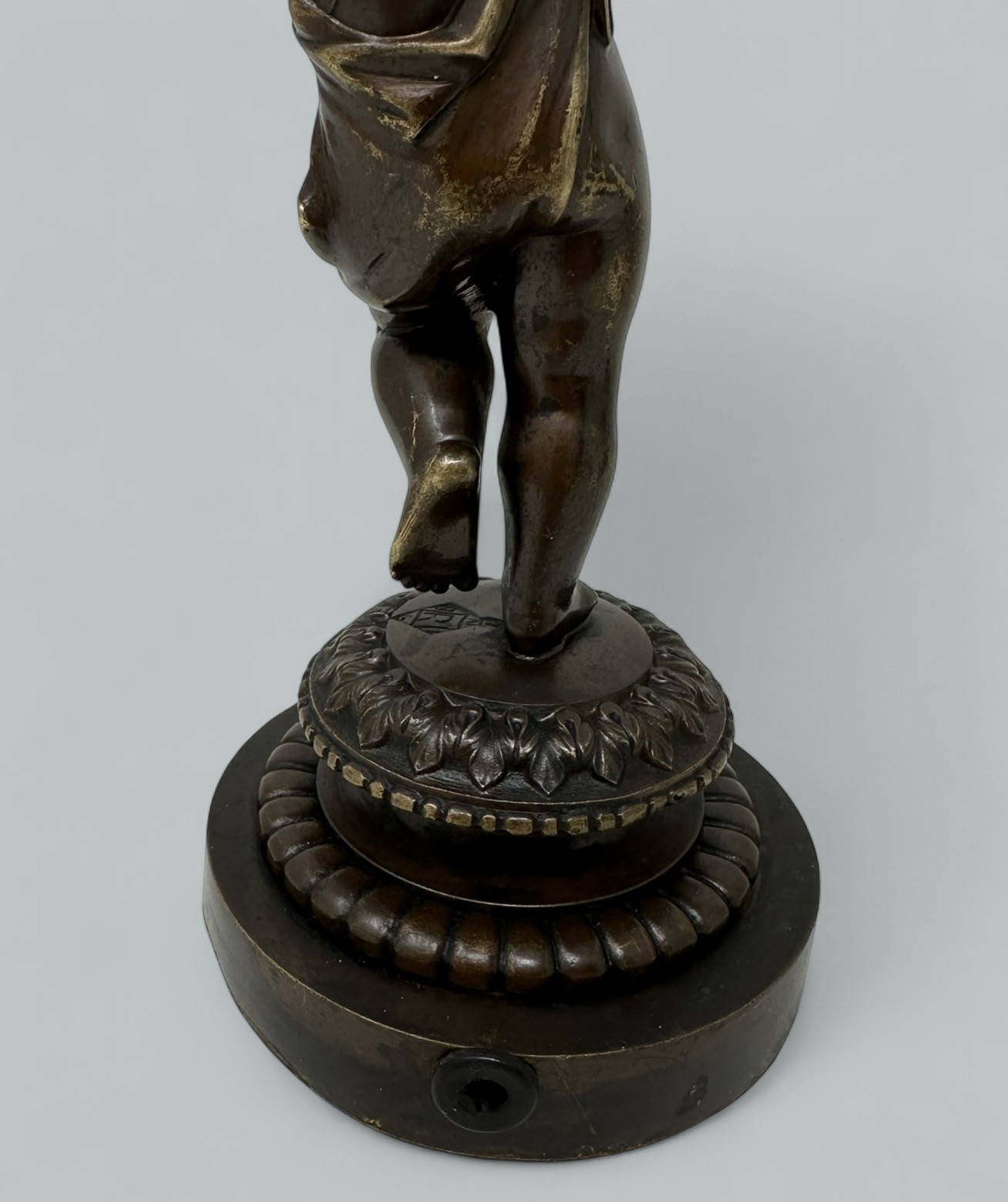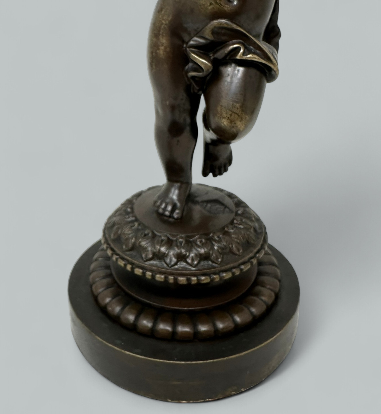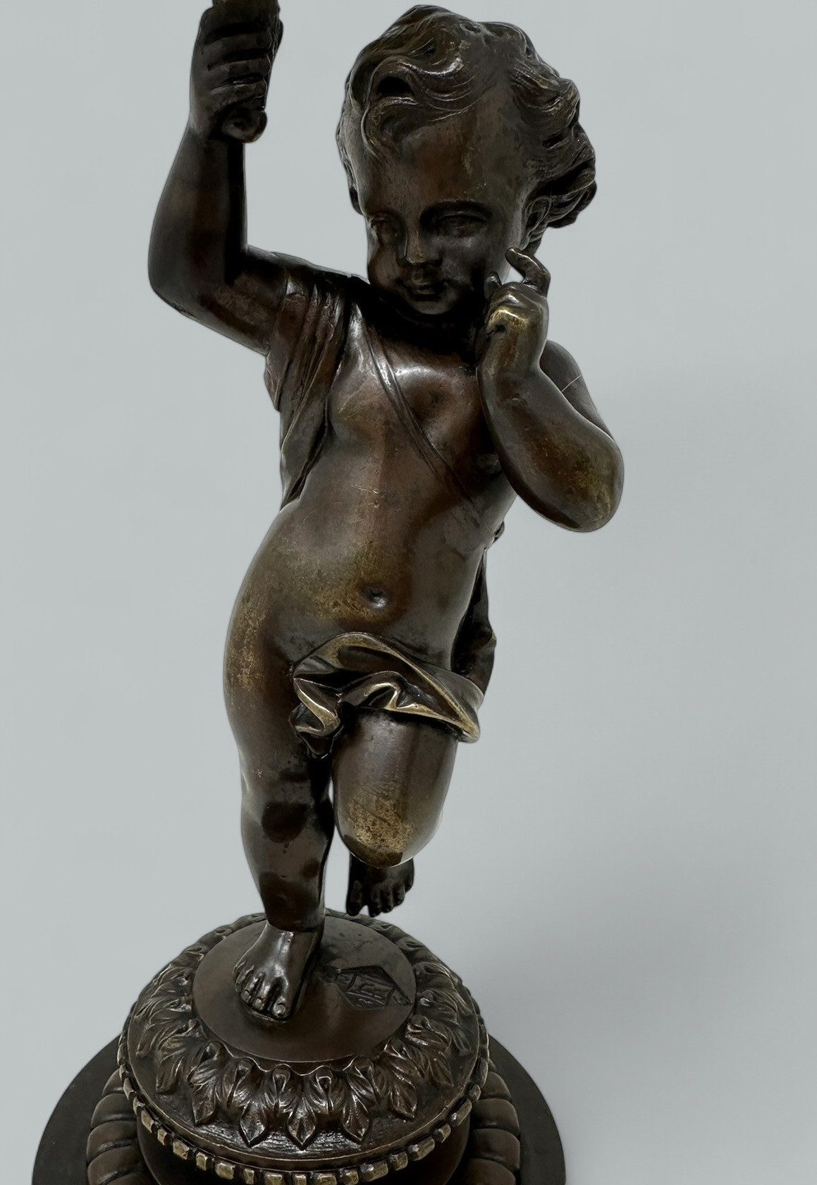 Absolutely stunning French chisel cast Patinated Bronze Classical standing scantily clad Cherub. Mid to late Nineteenth Century.