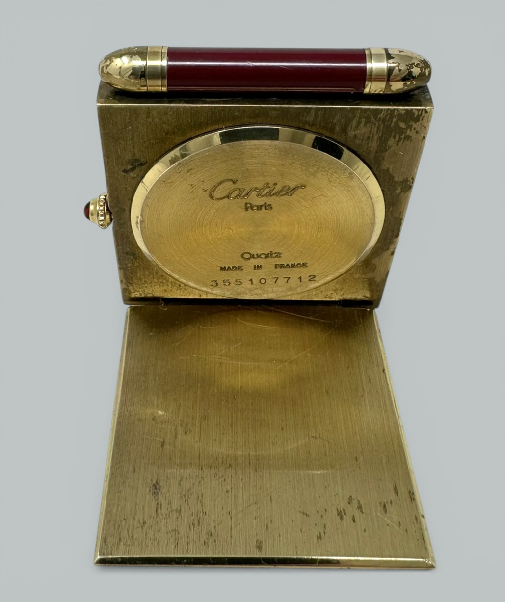 774. Mid Century Vintage Cartier Paris French Quartz Quadrant Traveling Alarm Clock