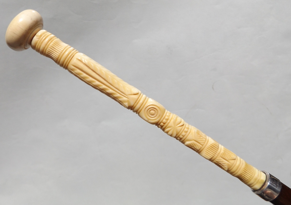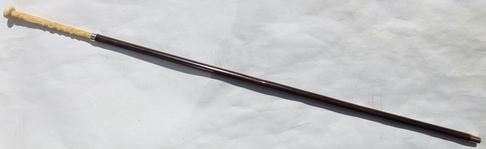 780. Superb Hand Carved Ivory Malacca Walking Stick Mid 19thCt