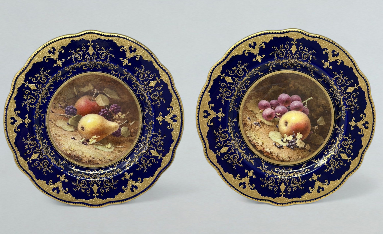 805. Antique Coalport Cabinet Plates Hand Painted Frederick Chivers Still Life 1910