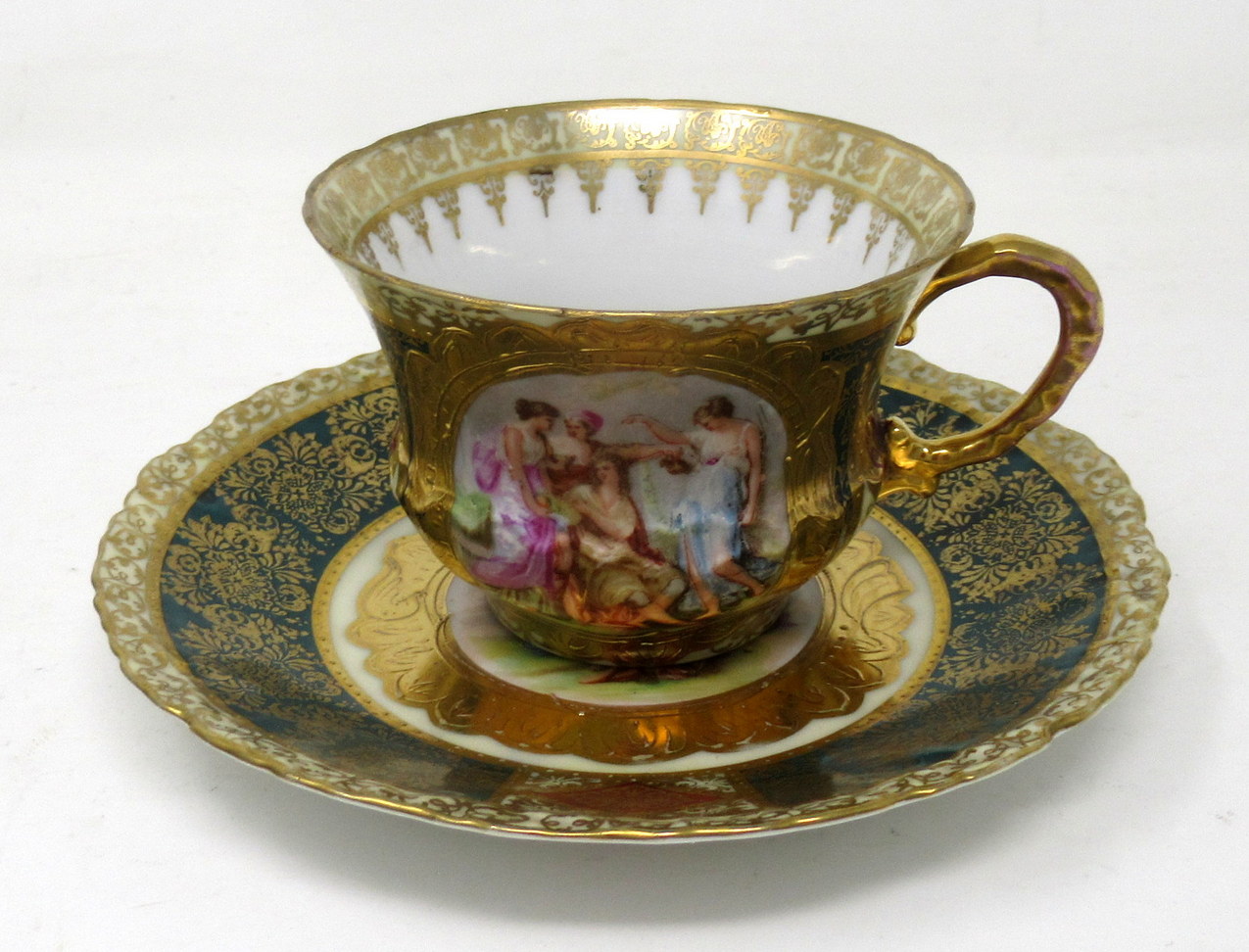 844. Austrian Royal Vienna Mythological Themed Angelica Kauffman Tea Cup Saucer 19Ct