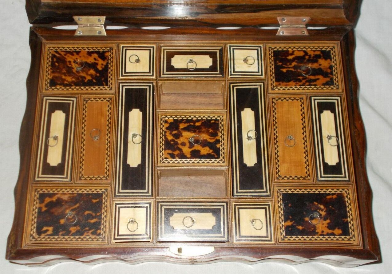 862. Antique Anglo Indian Coromandel Satinwood Ladys Jewellery Sewing Table Box 19ct