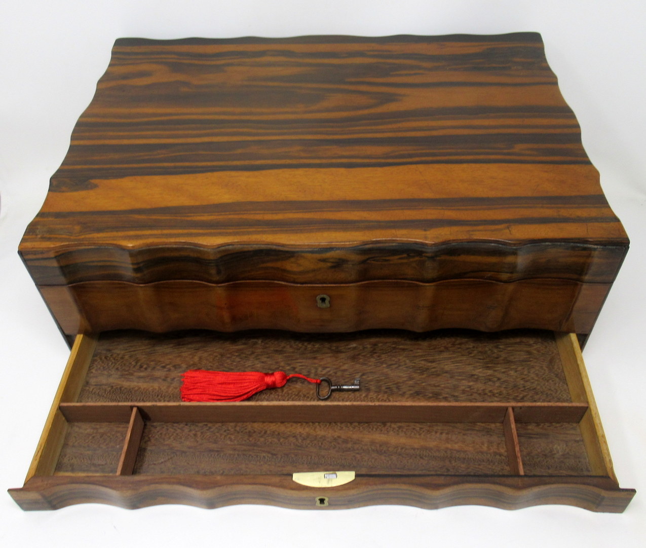 Stunning and Rare Example of a well grained Ladys or Gentlemans Coromandel Anglo Indian, possibly Ceylonese, fitted Travelling Sewing or Jewellery Casket of good size proportions. Third quarter of the Nineteenth Century.