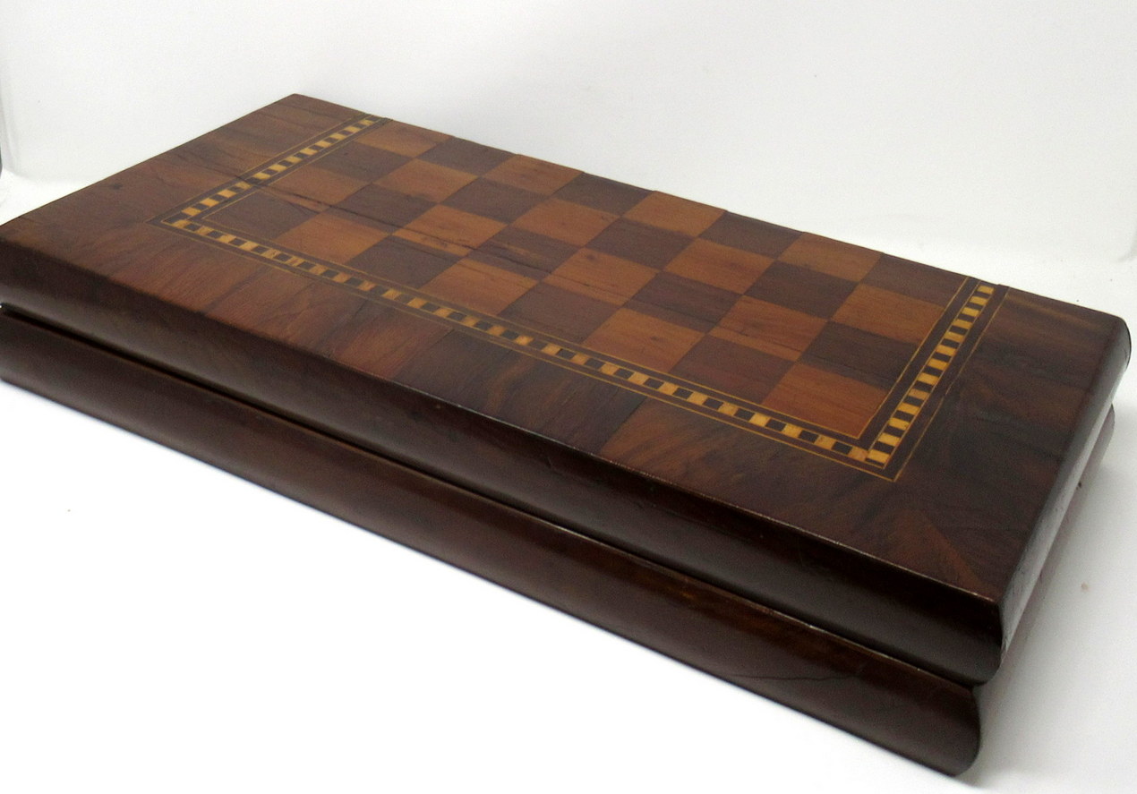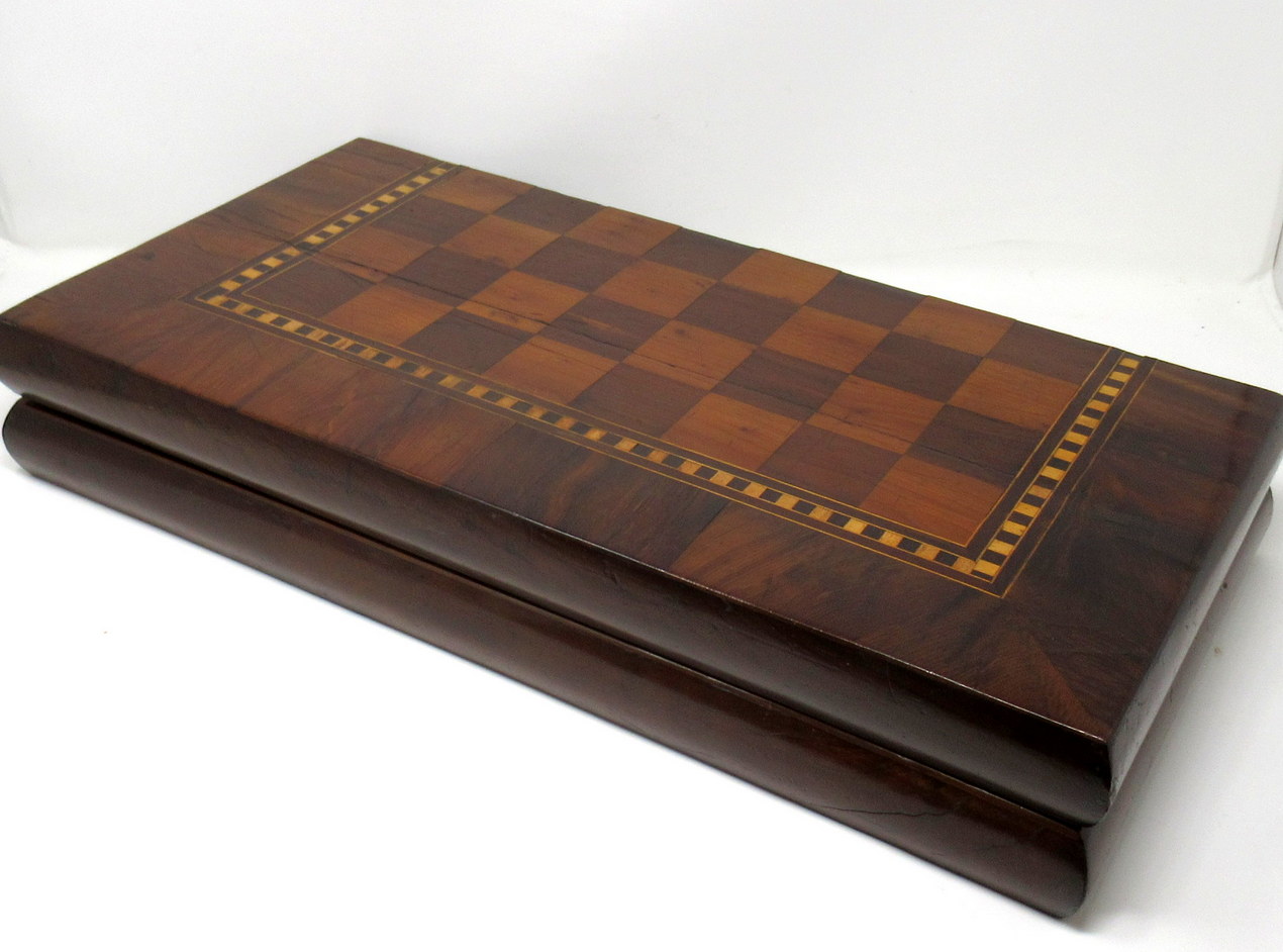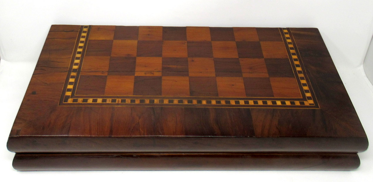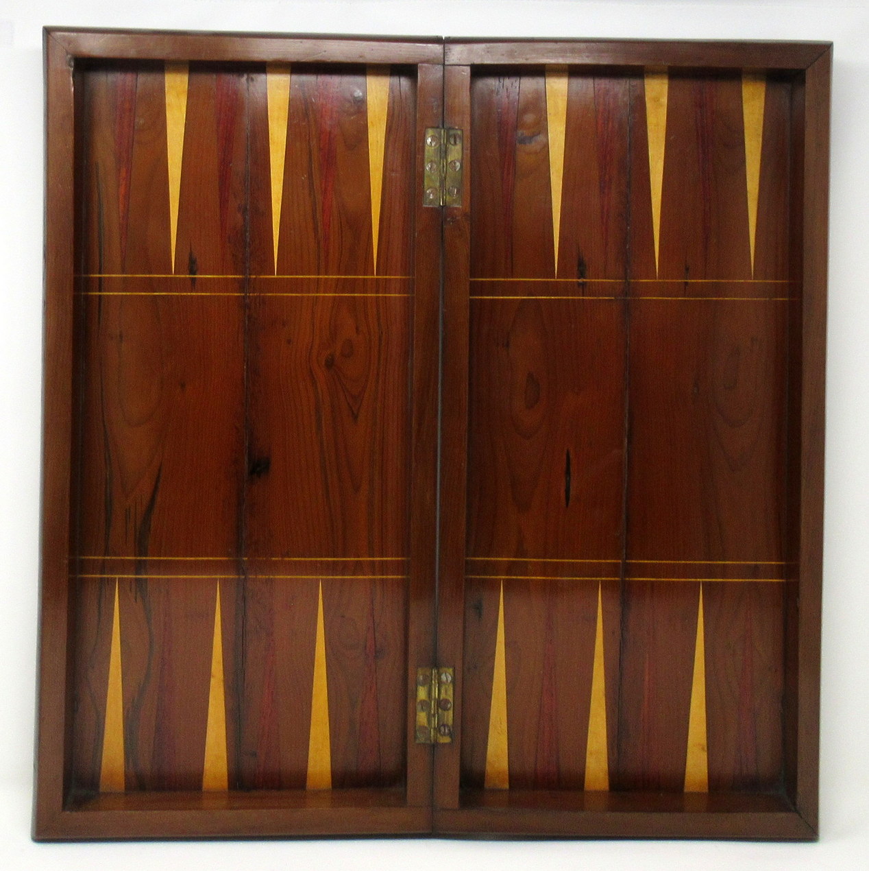 864. Rare Irish Killarney Arbutus Wood Backgammon Chess Set 19th Century