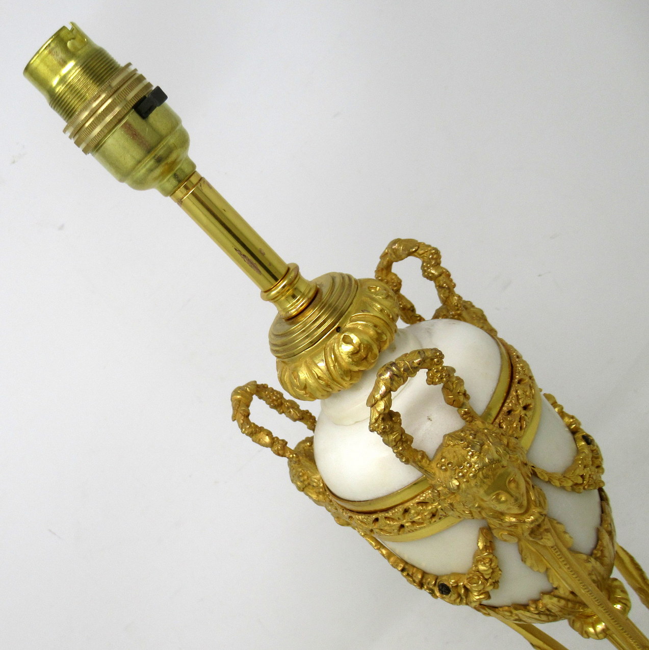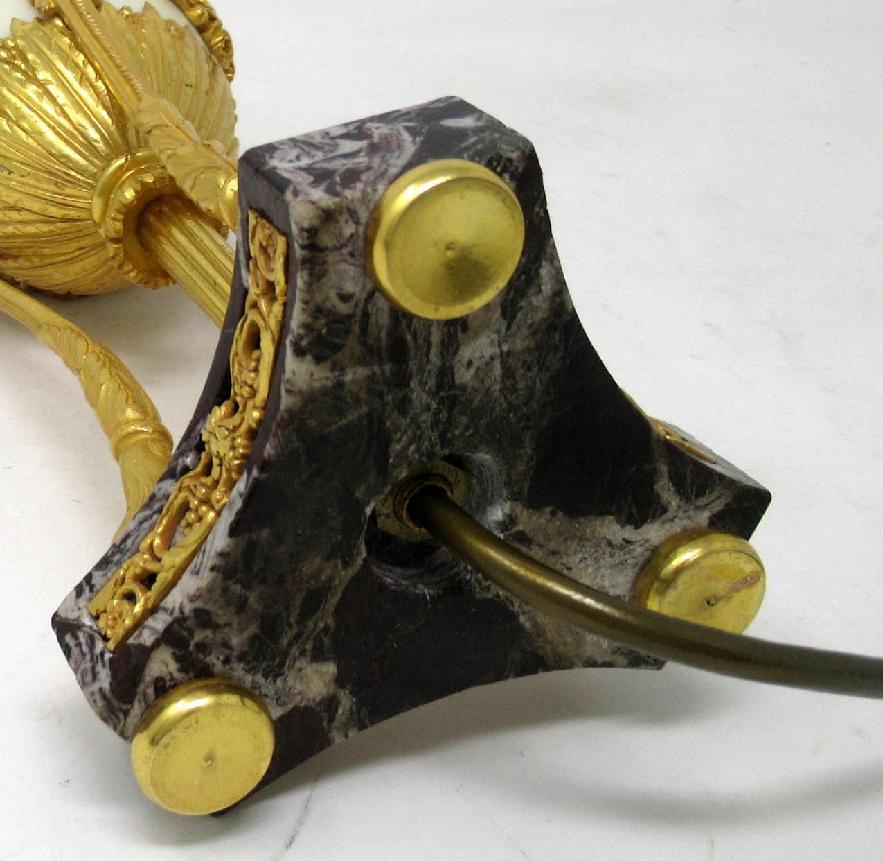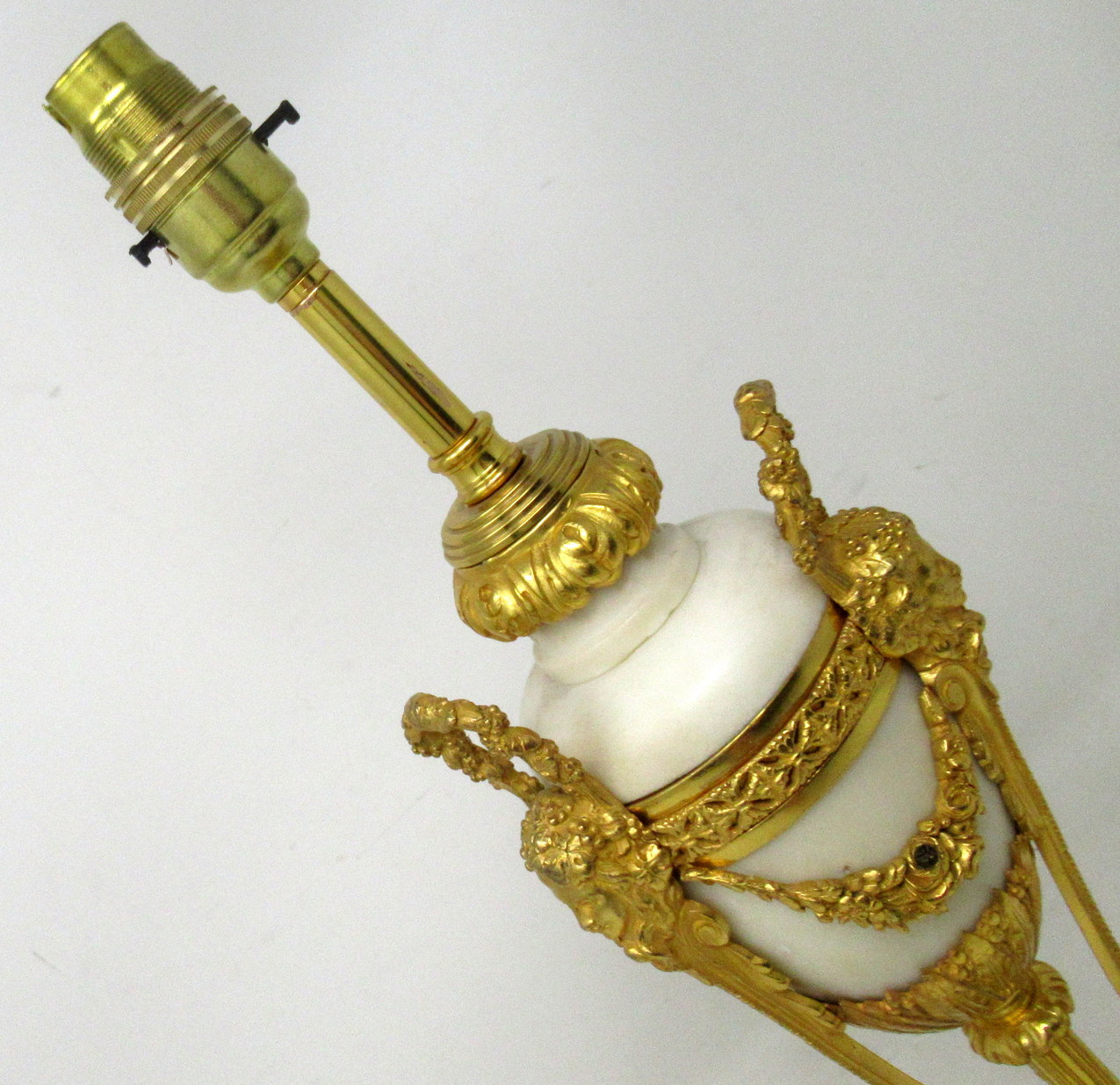 872. Antique Pair French Regency Grand Tour Ormolu Gilt Bronze Cream Marble Urns Table Lamps