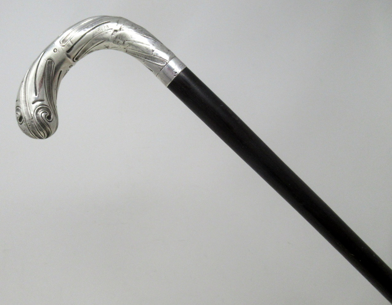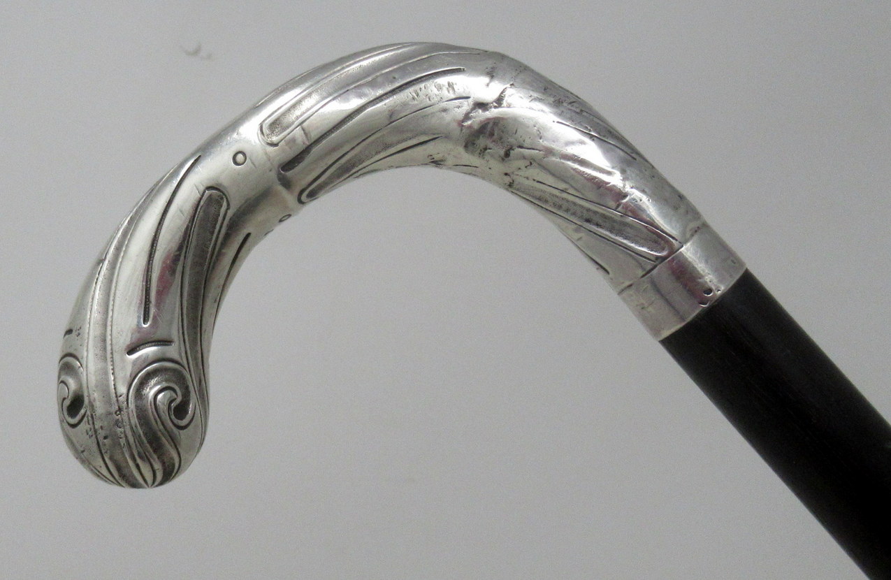 Condition: Good condition with nice patination to tapering wooden shaft, few age-related dents to silver and shaft.