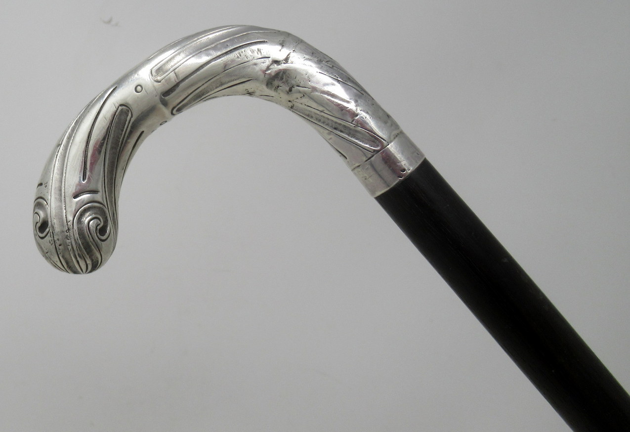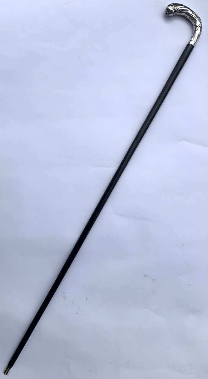 901. Antique Vintage Ladies Gentlemans Ebony Walking Stick Sterling Silver