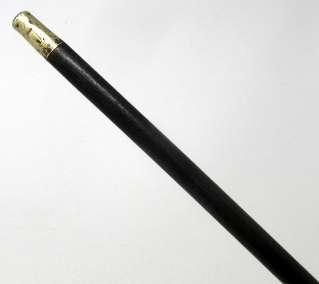 Stylish Solid Polished Ebony and Sterling Silver Lady’s or Gentleman’s Walking Stick with Traditional Crook shaped handle, complete with its original bi-metal polished brass and steel ferrule, which is very lightly worn from use. Late Nineteenth, early Twentieth Century