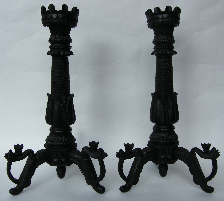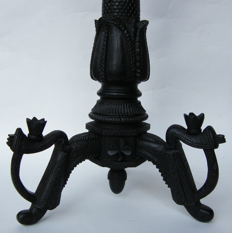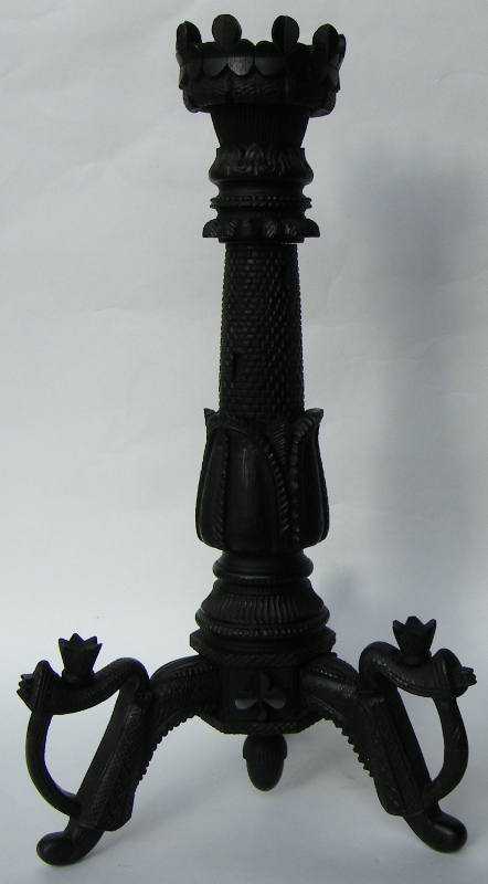 905. Large Pair Irish Bog Oak Candlesticks Museum Quality