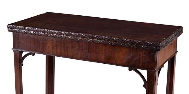 This table has superb constructional qualities, with tight crisp carvings and the use of finest mahogany throughout, this is truly a choice piece of period English furniture. The adaption of Chippendale patterns and the table’s distinctive Chippendale style and crisp carving are characteristics associated with the work of Wright & Elwick, Cabinet Makers from Soho, London and later moved to Wakefield, Yorkshire.
