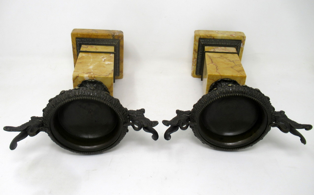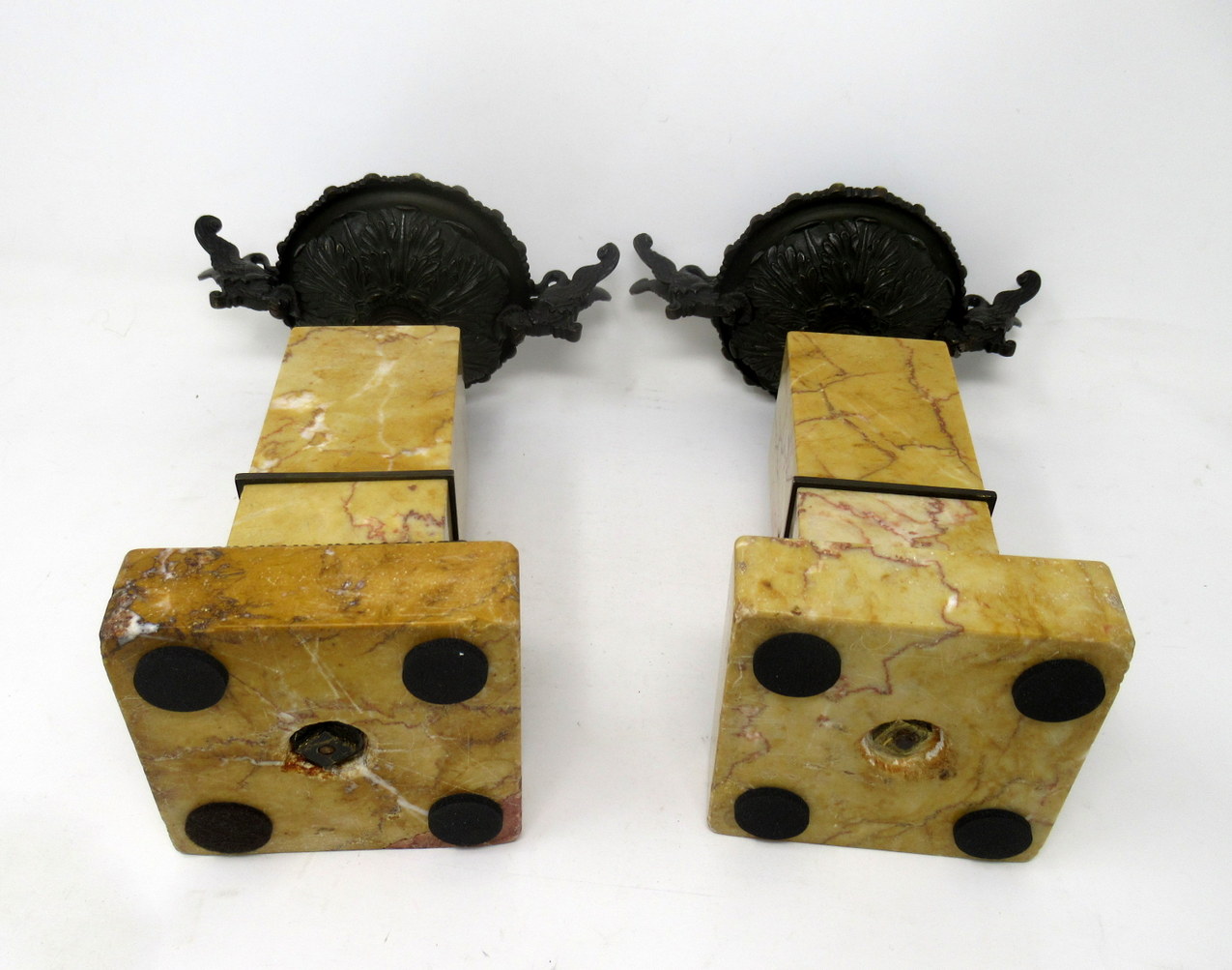 917. Antique Pair French Grand Tour Empire Bronze Dore Sienna Marble Tazza Urns Vases