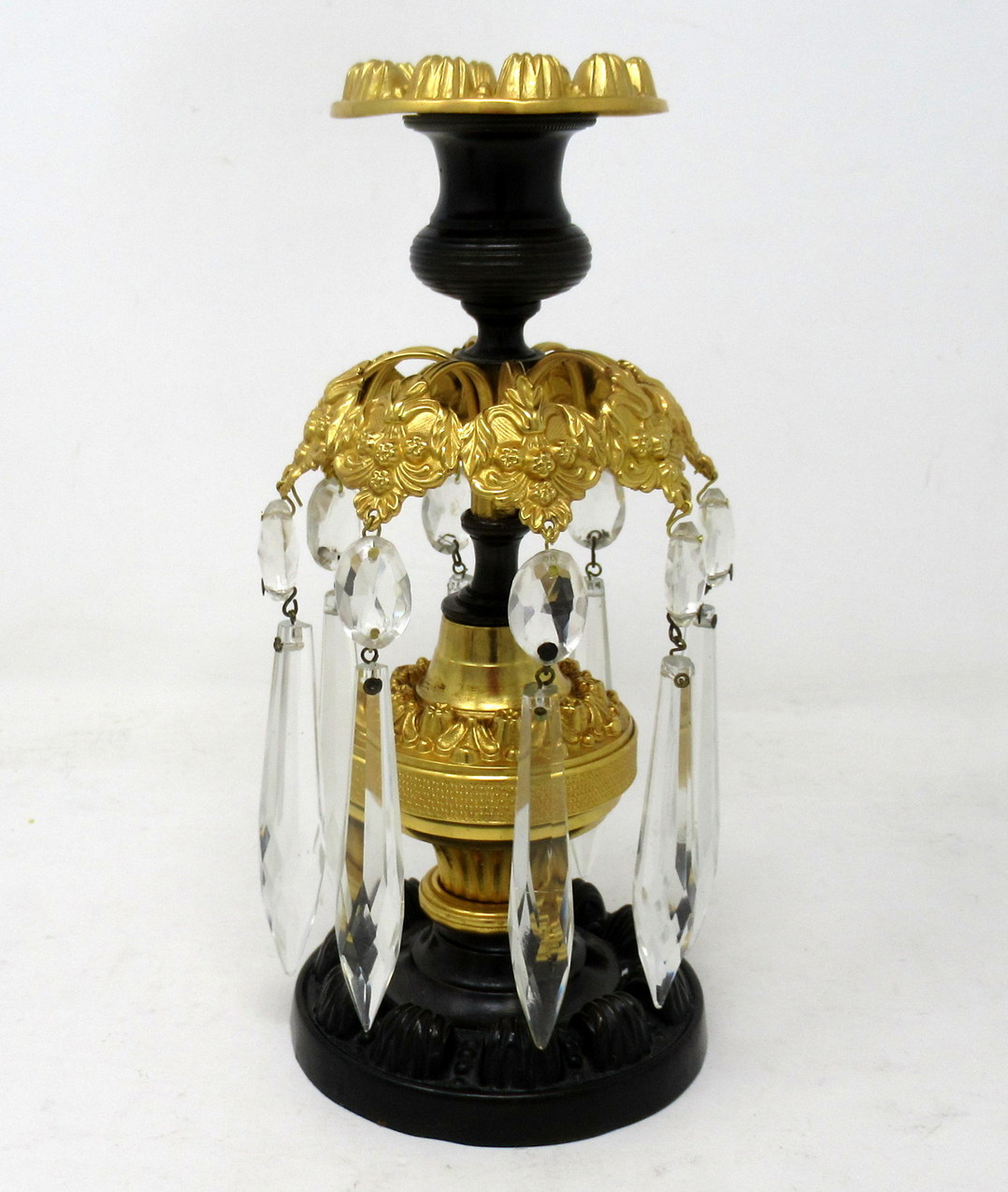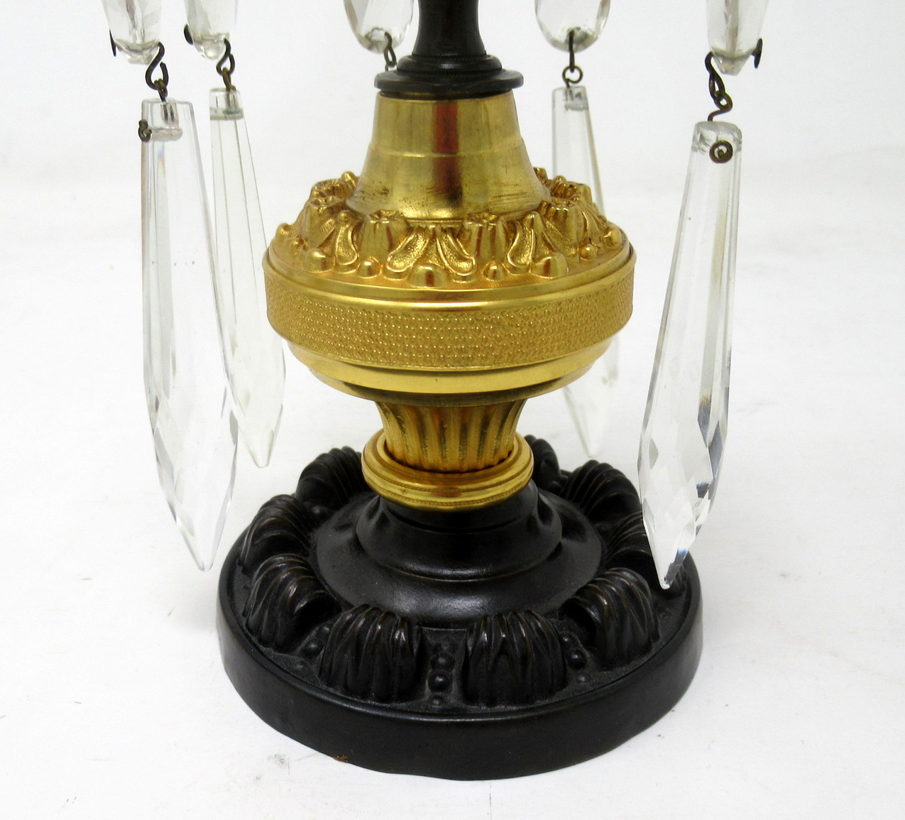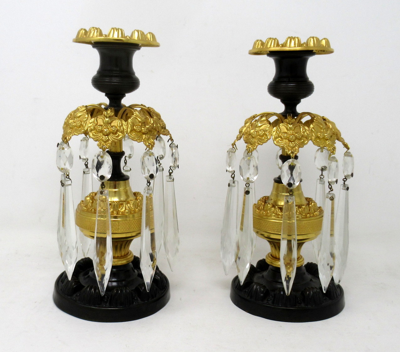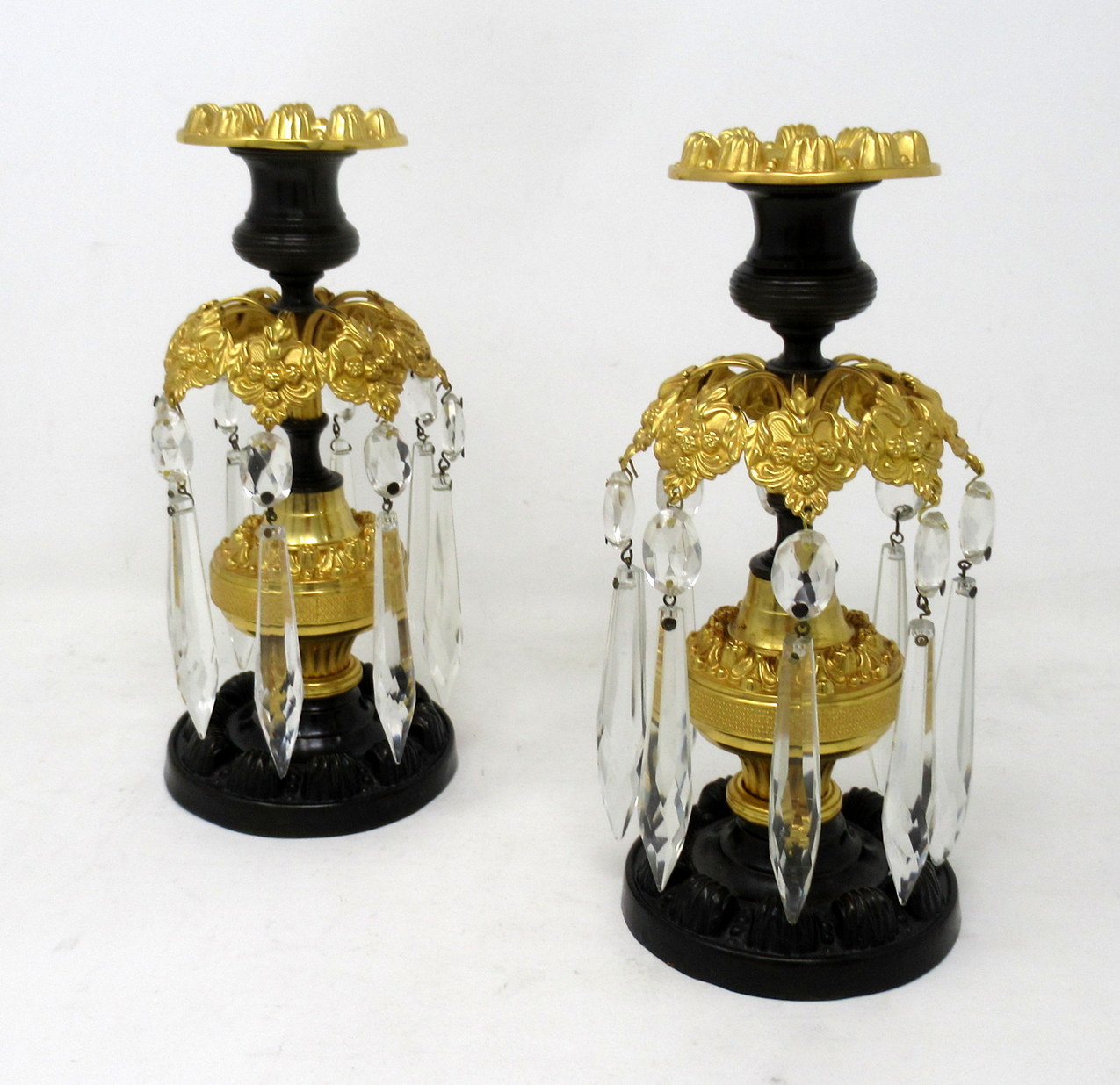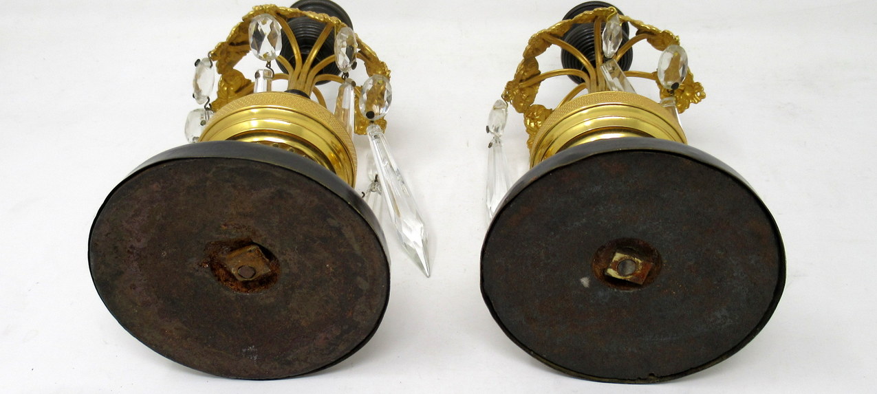 918. Pair English Regency Ormolu Bronze Lusters Lustres Candlesticks 19th Century