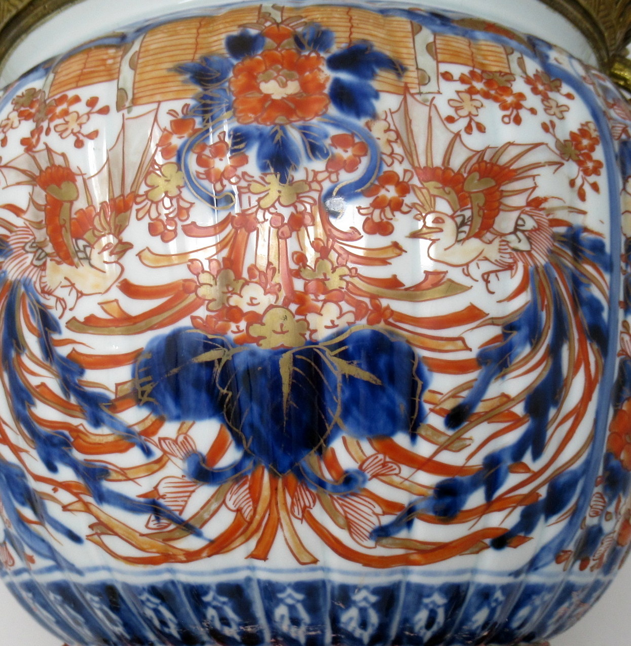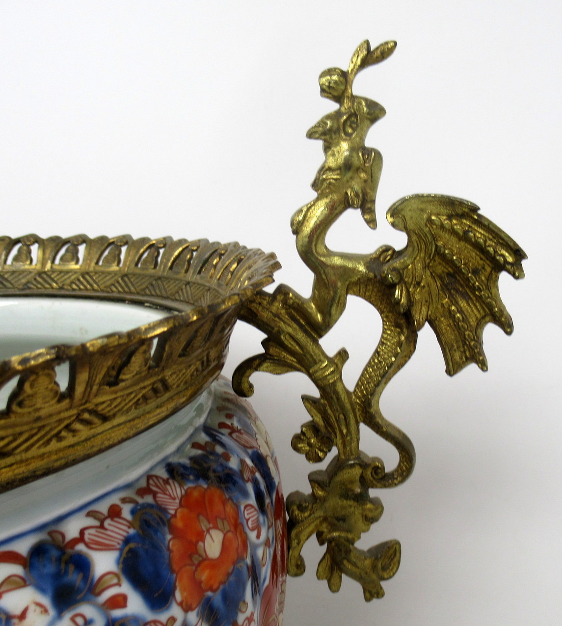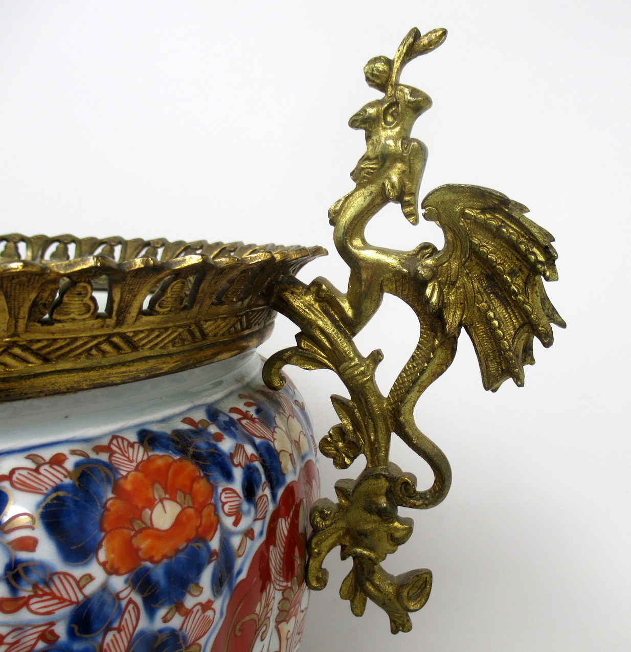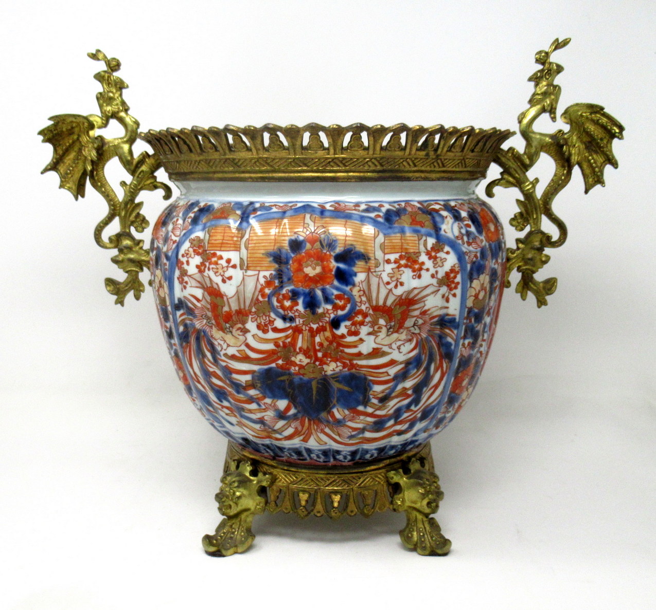 922. Japanese Meji Chinese Imari Porcelain Jardiniere Centerpiece Gilt Mounts