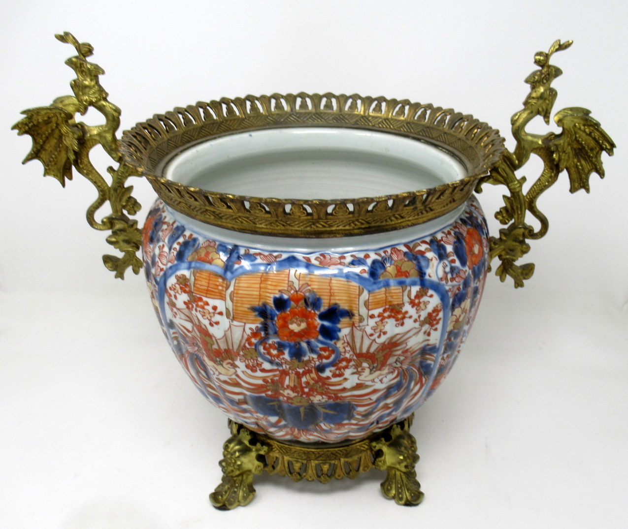 Very Fine Example of an Unusually Large and Heavy Bronze Dore Mounted Japanese Imari Porcelain Jardiniere of outstanding quality, late Nineteenth, early Twentieth Century.
