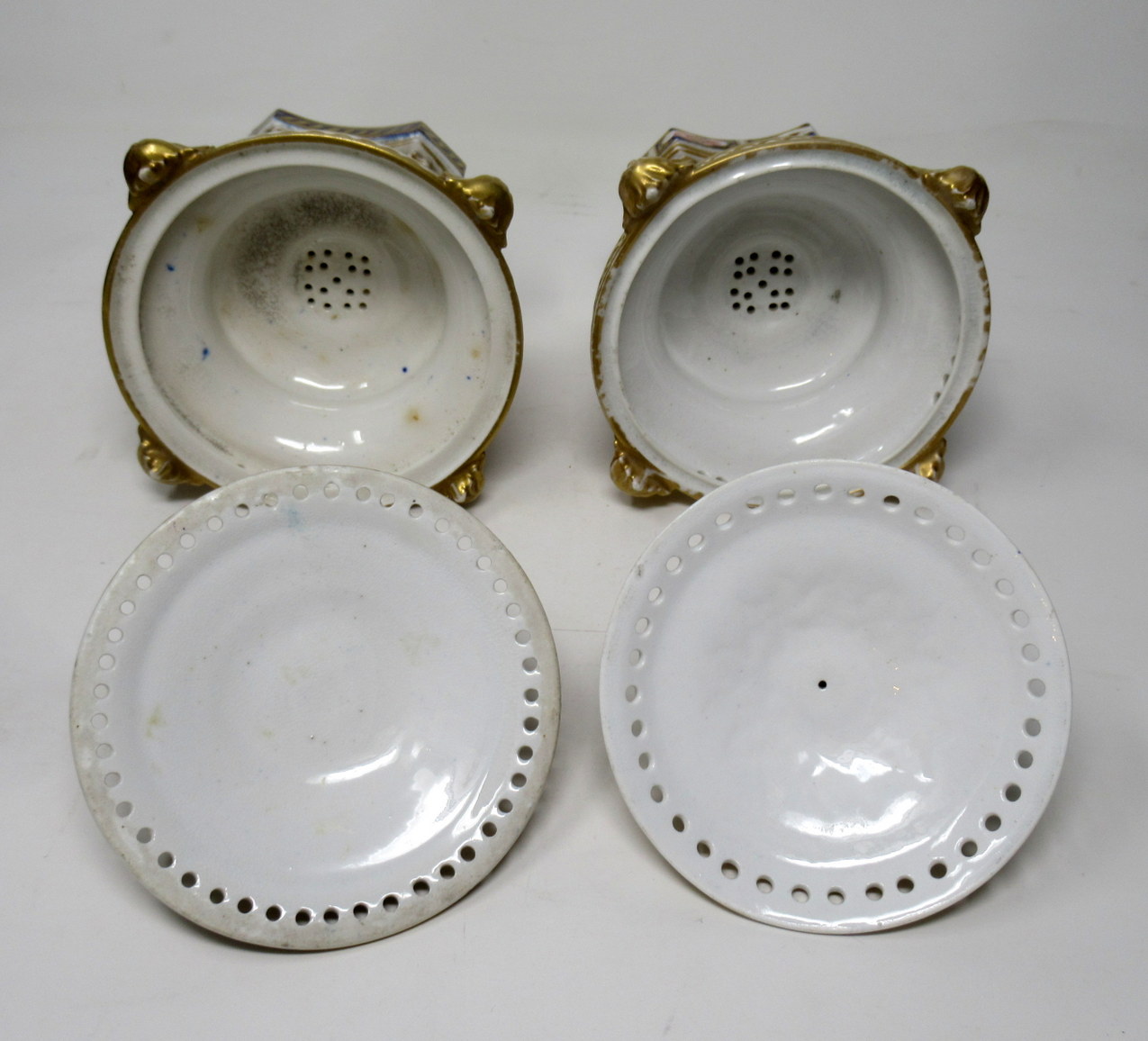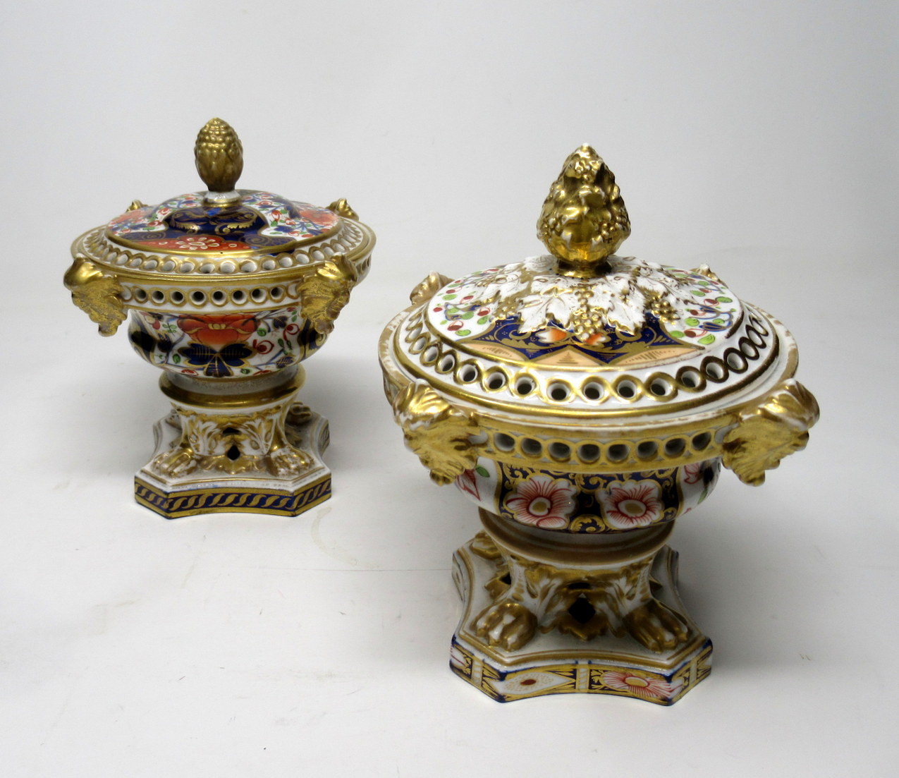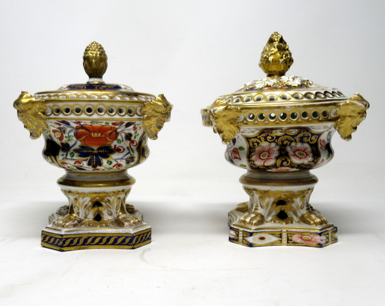 Wonderful Rare Matched Pair of Early English Regency Royal Crown Derby Porcelain Pot Pourri or Pastile Burners of traditional form. First quarter of the Nineteenth Century.