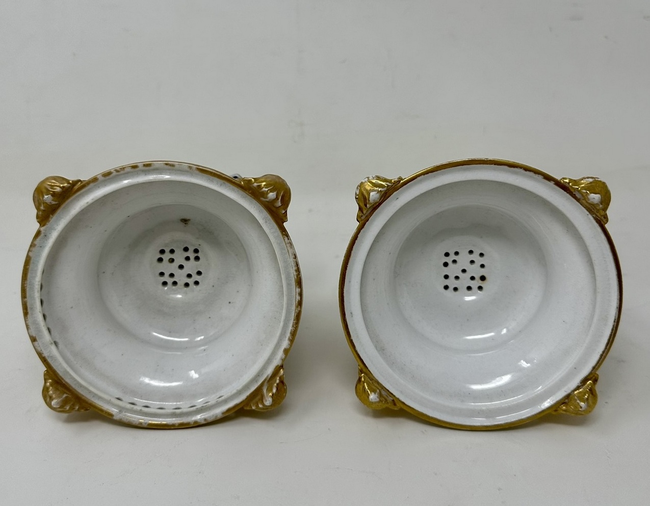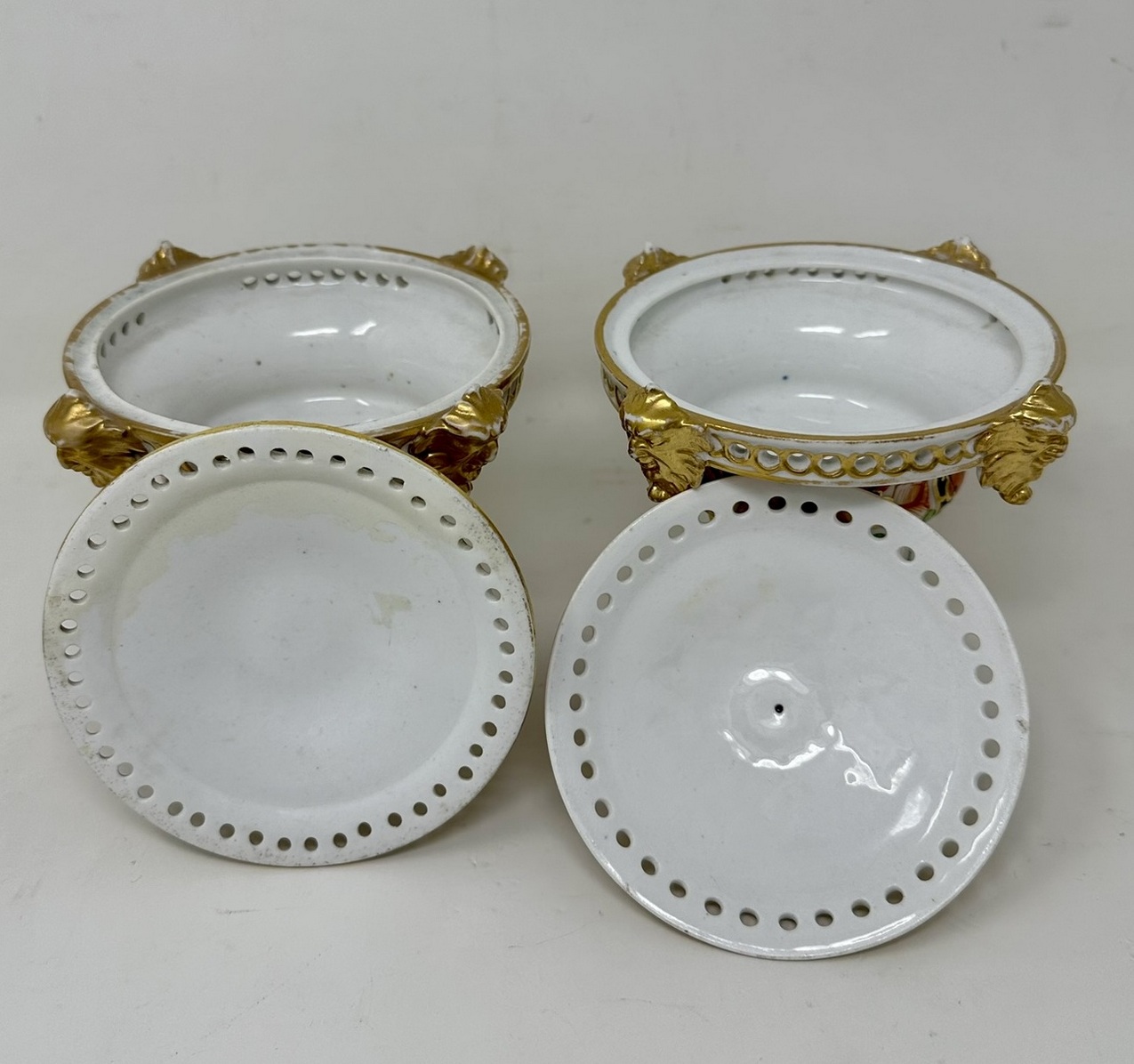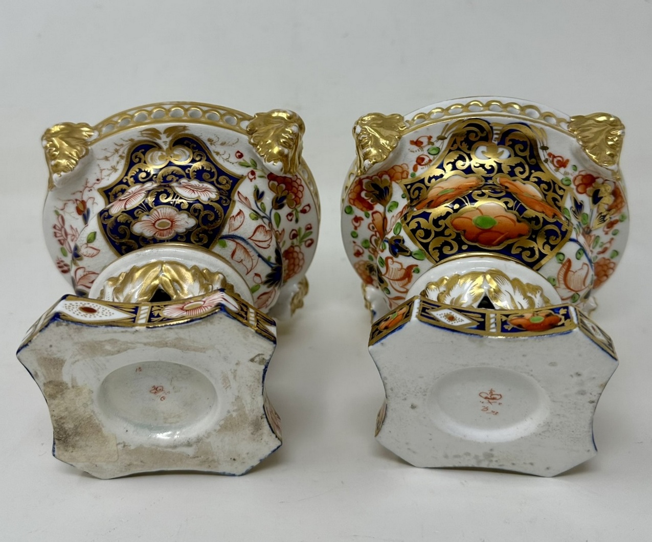 Condition: Superb condition for such early items, light wear to gilding at high points and some staining inside, evidence of gilt overpainting on one cover, see image. Both bases with iron red mark for circa 1815.