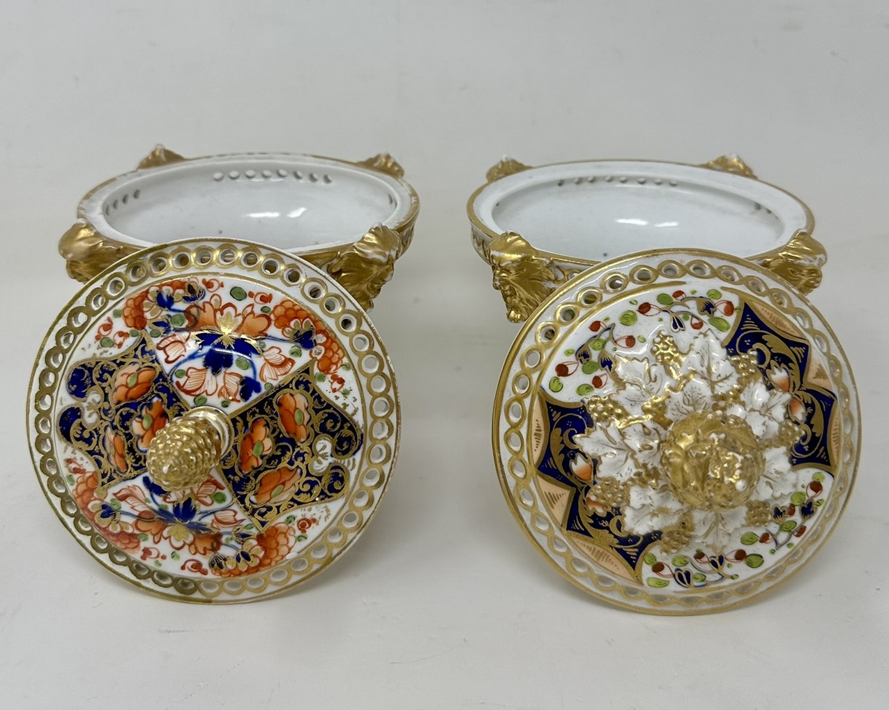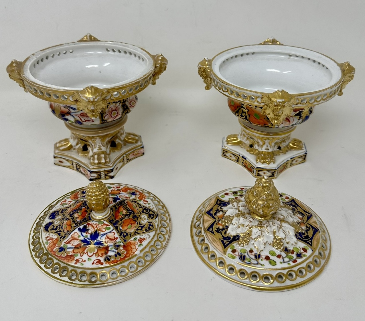 Wonderful Rare Matched Pair of Early English Regency Royal Crown Derby Porcelain Pot Pourri or Pastile Burners of traditional form. First quarter of the Nineteenth Century.