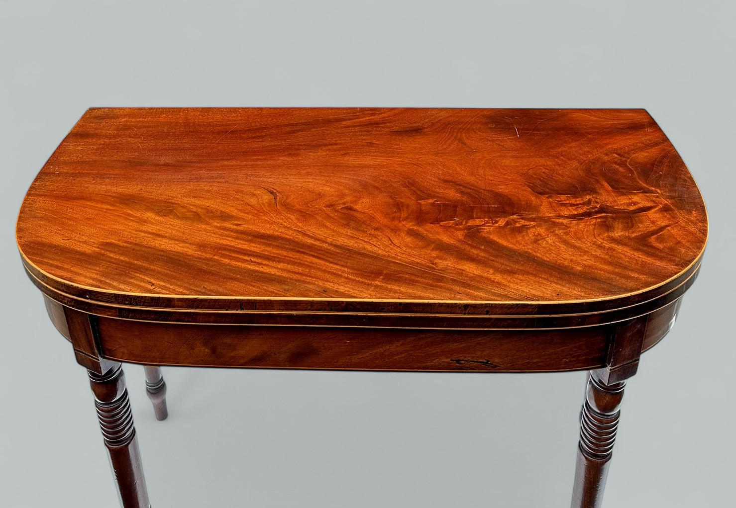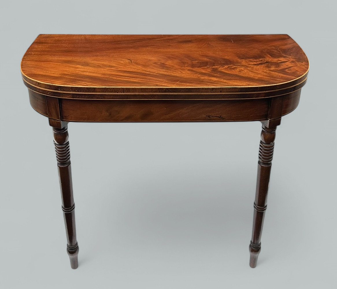 Stylish English Georgian Flame Mahogany Games Card Table of outstanding quality, early Nineteenth Century. Circa 1820.