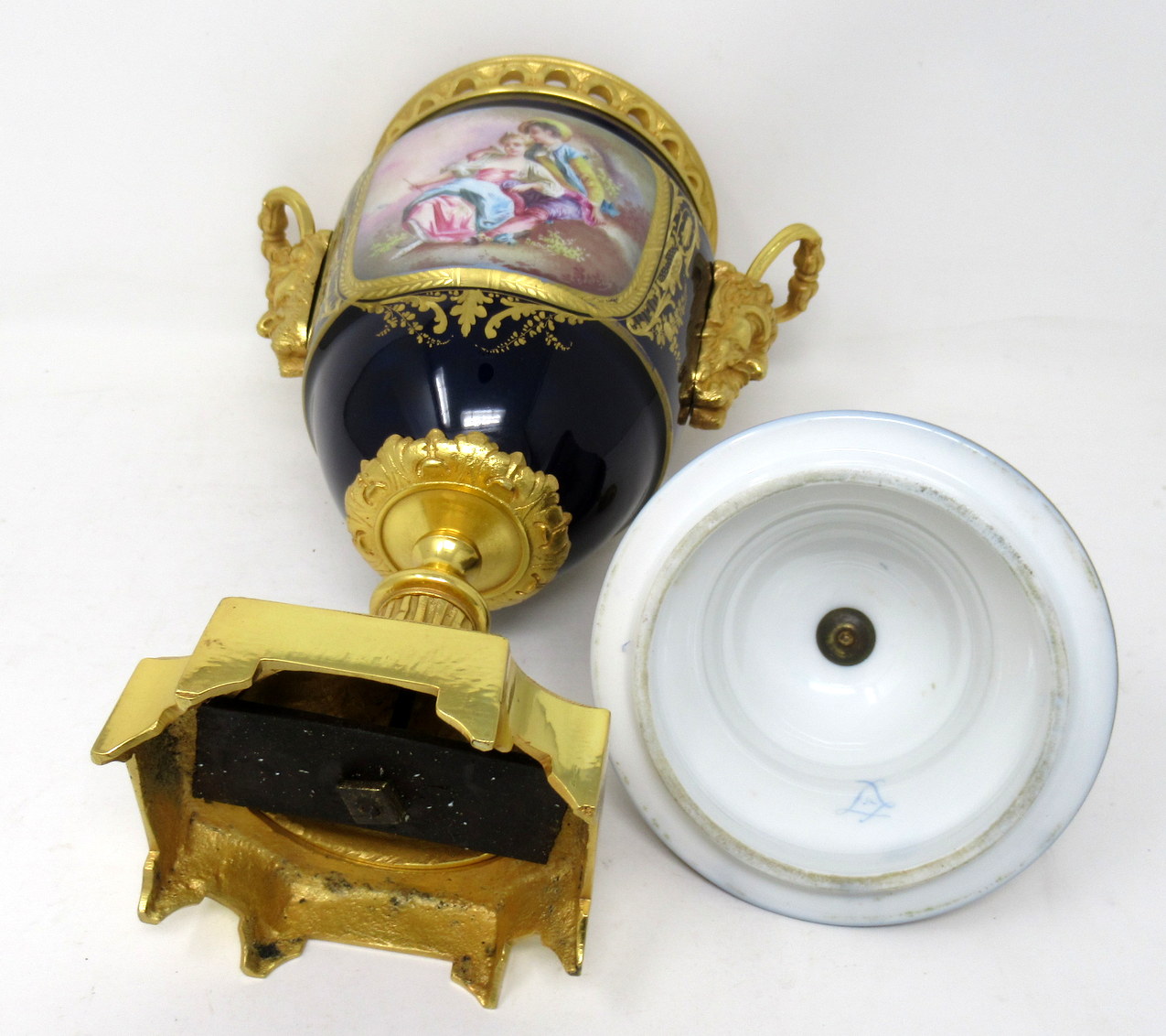 954. Antique French Sevres Porcelain Ormolu Gilt Bronze Urn Vase Potpourri 19thCt