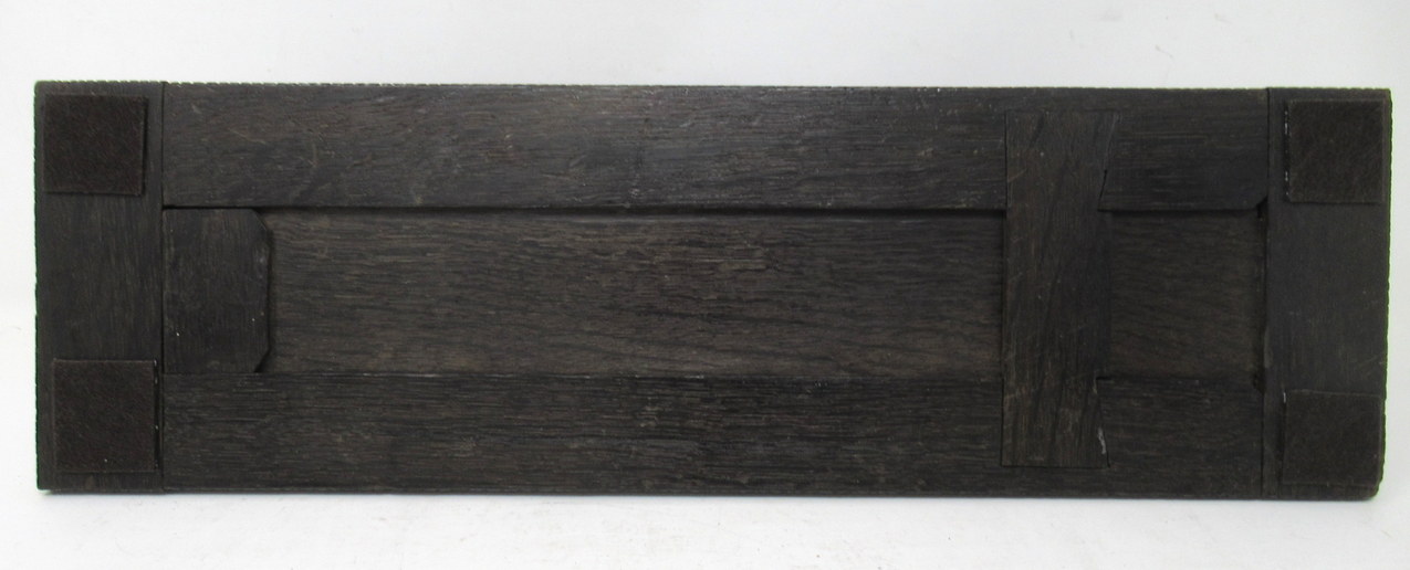 Irish Bog Oak is a rare timber excavated from deep underground, usually as a by-product of turf cutting, or when bogland is drained for agricultural use. The wood has been preserved due to the unique conditions of the bog, and is is usually jet black in colour. Ireland, in the 19th century, had a thriving bog wood industry in Dublin, with representation also in other main cities and in the tourist towns such as Killarney. It was a highly desirable material with pieces ranging from emblematic jewellery, book ends and candlesticks to intricately carved suites of furniture.