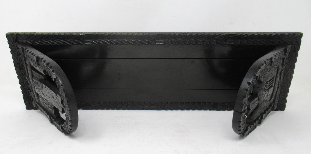 An Extremely Rare Irish Hand Carved Bog Oak Book Slide of good size proportions, mid Nineteenth Century, of outstanding quality and condition. The adjustable base with all-round Laurel Leaf decoration and a plain central split base. Firmly attributed to Cornelius Goggin 13 Nassau Street, Dublin Ireland.