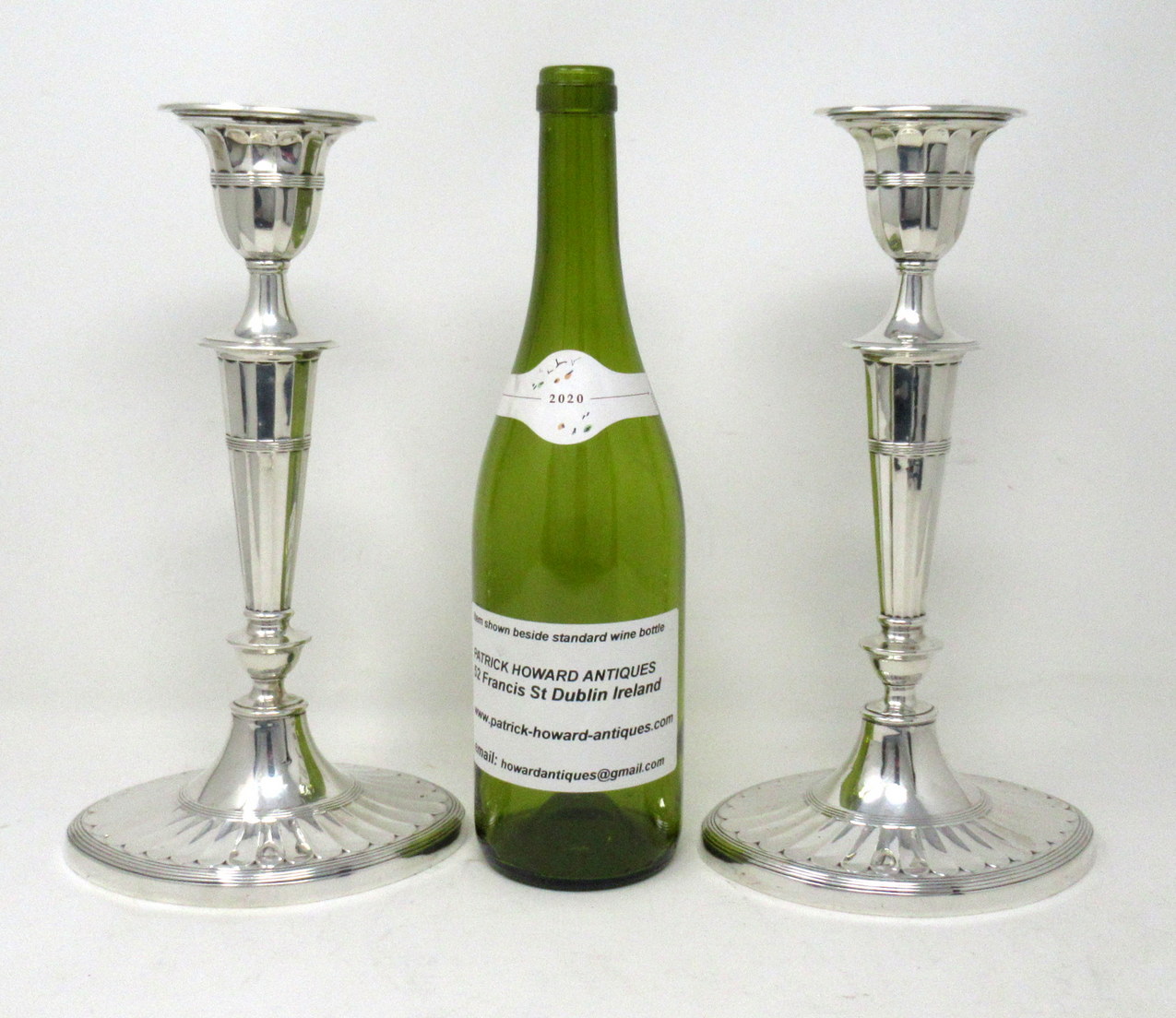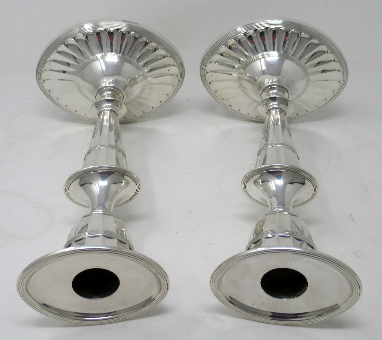 Stylish Pair of early Edwardian English Adams Style heavy gauge Sterling Silver Single Light Table Candlesticks of outstanding quality and quite large proportions.